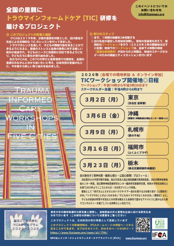 IFCA 全国の里親にトラウマインフォームドケア(TIC)研修を届けるプロジェクト